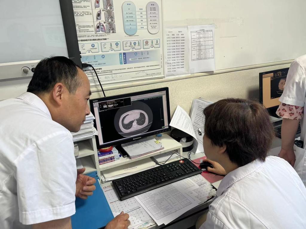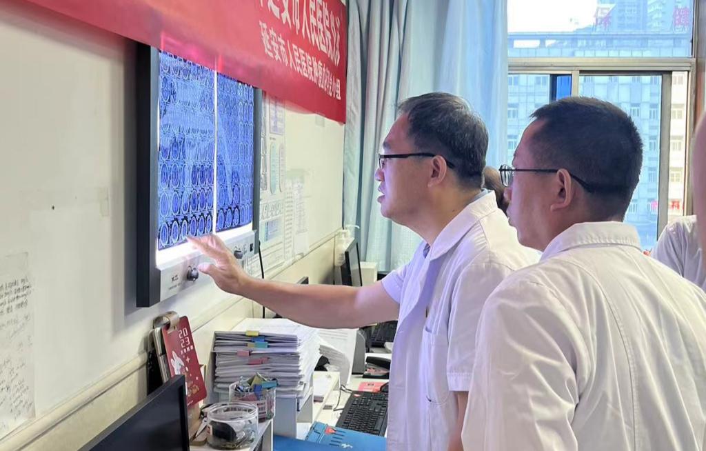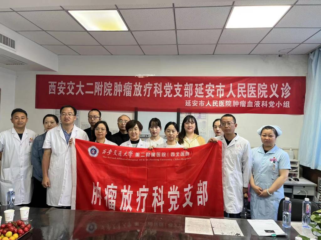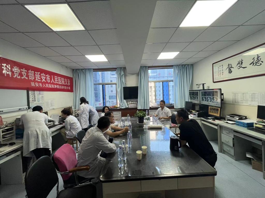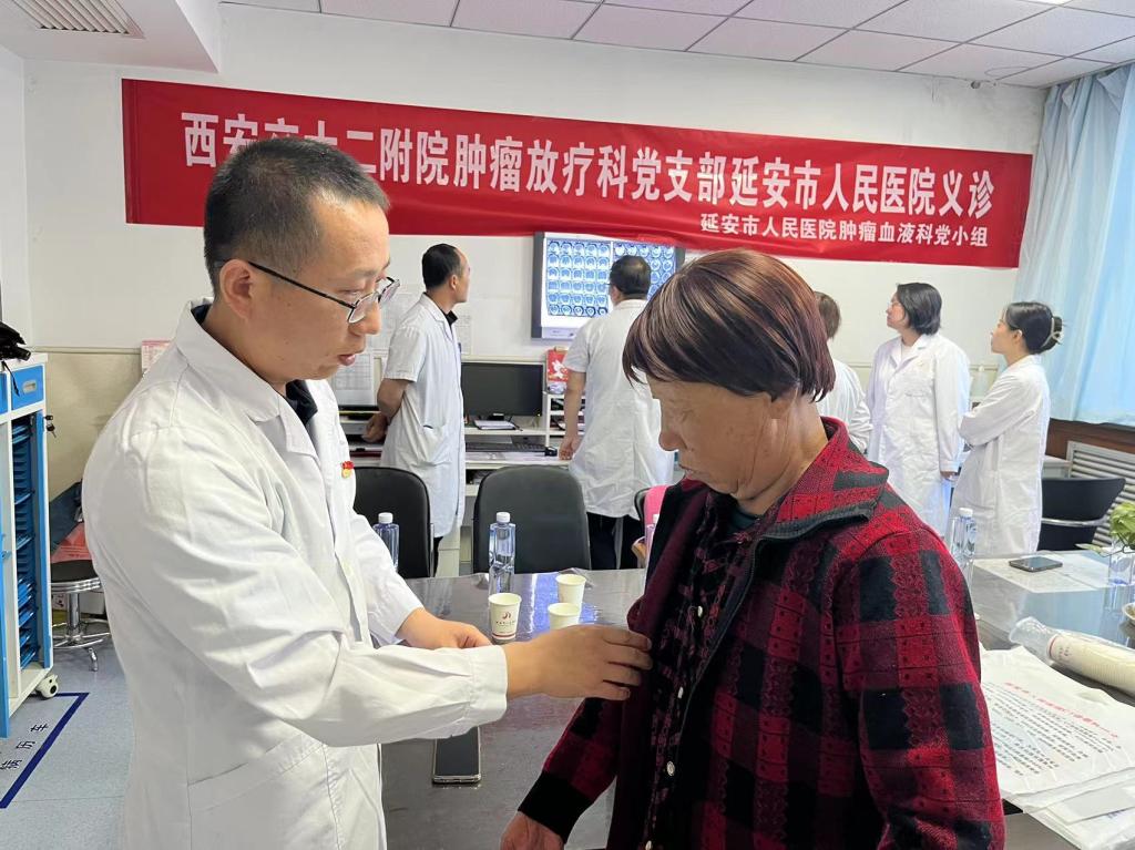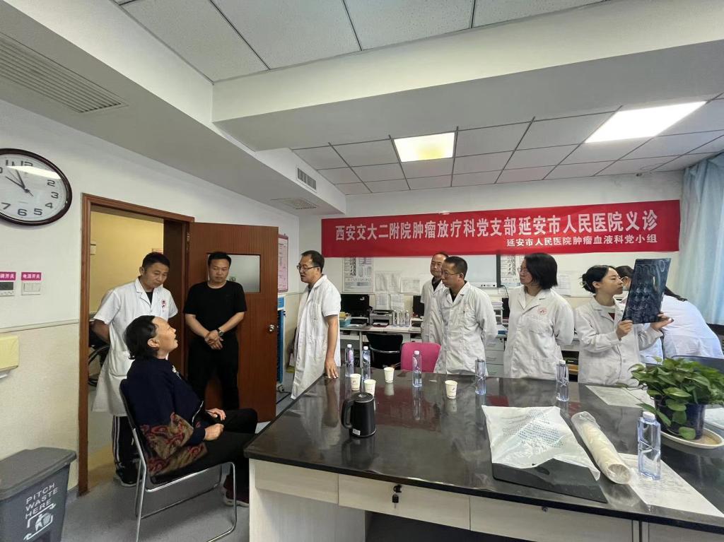 18日,肿瘤放疗科党支部前往延安市人民医院进行义诊活动。延安市人民医院医生对疑难病例进行汇报,马红兵教授、王亚利教授、任宏涛教授、郭亚教授等对病例进行讨论分析,对比患者治疗前后检查结果及目前症状进行会诊、问诊并解答。