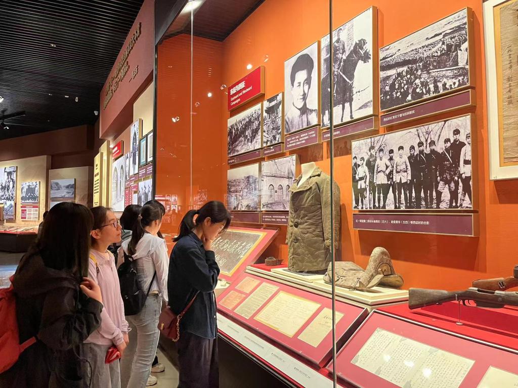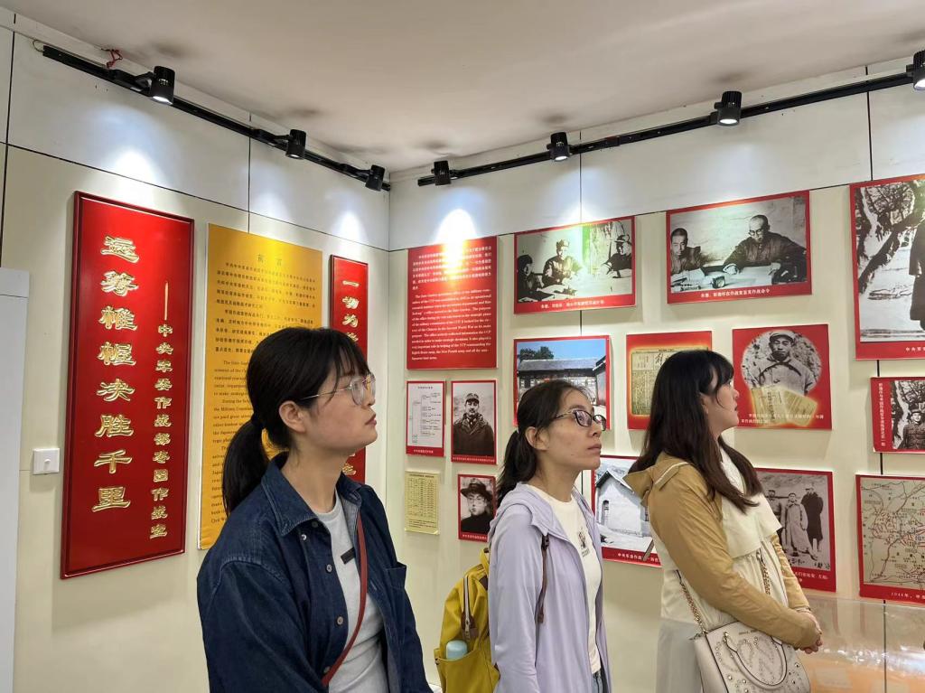 党员们首先参观了延安革命纪念馆。纪念馆以"延安革命史"10个单元进行展览,陈列厅以照片、雕塑、油画、图表等,形象生动地再现了党中央及老一辈无产阶段革命家在延安领导中国革命的艰苦岁月和丰功伟绩。接着,参观了王家坪、杨家岭、枣园及凤凰山等革命旧址。