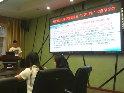 首先,由10(5)学生党支部书记谢昌达同志以“践行三严三实 深化作风建设”为题详细阐述了 “三严三实”的具体内容,科学内涵以及我们学生党员在实际学习、生活中如何践行。“三严三实”是对党组织内部和党员的作风建设作风管理的进一步升华和阐述。各位党员同志和干部更需要加强党性修养,坚定自身的理想信念,提升道德境界,追求高尚情操。对于我们学生党员而言,尤其是对于我们交大医学生而言,“三严三实”的现实意义即是要以高度的政治责任感和使命感履职,不断学习党建知识和专业知识,深刻领会“三严三实”的内涵和要求,自觉把“严”和“实”落实到具体学习和生活中,以高昂的士气和崭新的状态开展学习工作,党员时刻以“三严”标准来要求自己,党员干部把“三实”落实到学生群众去,为群众服务,真正做到内化于心、外化于行,立足本职,深化作风,履好职责。