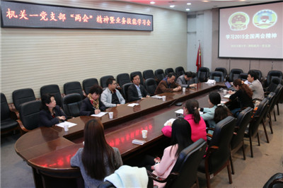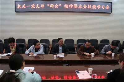 4月7日下午,机关一党支部在行政楼二楼会议室召开“两会”精神暨业务技能学习组织生活会,安排了党员理论知识和业务技能两大板块的学习内容。院党委书记韦俊荣和支部党员一起参加组织生活并对党员学习提出希望和要求,工会办公室张海英和纪委监察室张军科两位副主任引导学习“两会”精神,院团委书记董艳为大家讲解PPT的制作,党变玲支部书记引导学习习近平总书记为第四批全国干部培训教材所作《序言》精神并主持会议。