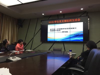 随后学生党总支书记吕晔老师向大家介绍了本次《关于进一步加强学生党员发展工作的若干意见》学习的主要内容和要求,由10(5)支部组织委员徐淼英同学带领全体学生党员就文件的五方面内容进行集中学习。学生党员从学习内容出发,结合支部实际情况,展开热烈的讨论。对支部教育活动形式多样化,理论学习的针对性,党课的改进等方面都提出了很好的建议,尤其学生党员们普遍认识到端正入党动机首要举措是加强全体同学的理论学习,党员质量是发展工作的关键,也是决定支部生命力和战斗力的关键!