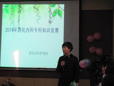 2014年12月11日下午4时,消化内科护理部在科室主任的指导及支持下,成功举行了首届“消化专科知识竞赛”,本次竞赛号召护理人员积极参加,围绕专科护理知识,基础护理知识及优质护理内容,以知识竞赛的形式竞技,充分调动了护理人员钻研业务知识的积极性和主动性,提高了护理人员业务水平,从而建设一支基本理论扎实、知识结构合理、操作技能规范、业务素质过硬的消化内科护理队伍,以更好地服务百姓。白衣天使们以这种特殊的方式来重温消化内科专科知识,交流护理技能经验,进一步提升护理服务水平。