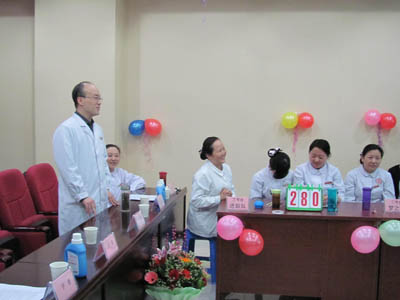 竞赛尾声护理部副主任孔德玲、大内科总护士长丁抗宁代表全体护士感谢科室领导对护理工作的关心和支持,并对今后的工作进行了展望。消化内科副主任鲁晓岚对本次竞赛的优点和不足进行了补充讲话。消化内科党支部宣传委员李路教授代表支部总结发言,本次竞赛结合消化内科党支部工作,充分发挥党员及积极分子作用,积极参加本次活动,竞赛精彩纷呈,高潮不断,选手们赛出了成绩,赛出了水平。