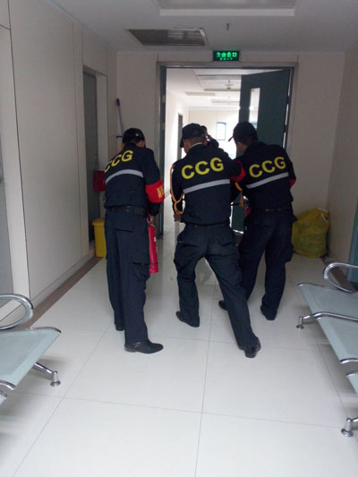 为了进一步增强我院安保人员消防安全意识和应对突发性事件的能力,掌握有序的安全疏散逃生、正确的扑救初起火灾的方法,2014年11月4日18时,保卫部组织中城卫保安公司25名安保人员在门诊大楼三楼东区进行了消防应急演练。 参加演练的人员分为灭火行动组、疏散引导组、通讯联络组、安全救护组。