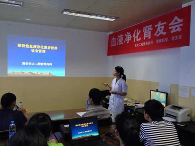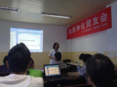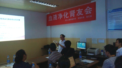 为了让科室患者及家属了解更多的肾脏病知识,我院肾内科于本周二下午2:30在肾病内科示教室开展了本年度第一次血液净化肾友会,40余名患者与医护人员共聚一堂,聆听了肾脏病血液净化相关知识讲座。