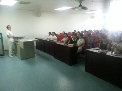 2014年8月14日下午,在内分泌科护士长李小红的组织与主持下,全院临床科室的50余名糖尿病护联小组成员、相关科室低年资护士以及进修护士等70余人齐聚综合楼六楼麻醉科示教室,参加糖尿病专科知识的培训。在今年年初,护联小组各片区组长收集各科室糖尿病治疗及护理管理中的问题,经归纳总结问题集中在饮食指导、药物治疗及护理等方面。因此,今年小组活动主要以解决护士临床工作中实际问题为出发点。