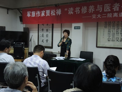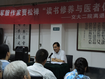 贾松禅老师的讲座内容分三个部分。一:当前新形势下,我们面临的社会问题。概括起来就是面临着“四大考验”和“四大危险”。四大考验是:(一)执政考验:直接绝对权力产生绝对腐败,尝到权力味道的人,对权力的争夺趋之若鹜;(二)改革开放的考验:改革开放,打开国门,我们一方面在呼吸新鲜空气,一方面也在承受苍蝇和蚊子的骚扰;(三)市场经济的考验:市场经济让社会上的一切都市场化,包括权力、道德、价值观念、爱情、婚姻等等,到处都是交易,到处都是商品,人人都是商人,金钱至上。(四)外部环境的考验:外部环境,特别是国际环境和各种反华势力借助网络、广播、电视、报纸等媒体平台,对我国的治国方略、意识形态、思想价值观念进行恶意攻击,有些纯属于混淆视听、扰乱思想。四大危险是:(一)精神懈怠的危险:精神状态是一个国家、一个民族、一个政党团结奋进的内在灵魂与发展进步的力量之源。对个人来说,精神状态是一个人的世界观、人生观、价值观的外在体现。精神状态决定工作状态,工作状态决定工作成效。保持良好的昂扬向上的精神状态是开拓事业、成就事业的重要保证。(二)能力不足的危险:有能力没权力只是一时的屈才,有权力没能力更可怕。有些人没知识,瞎指挥,没能力,乱协调,重点决策脱离实际,搞了很多劳民伤财的面子工程、形象工程。(三)脱离群众的危险:我党从诞生的时候起,就与群众形成了同呼吸共命运的鱼水关系。水可以生鱼,但鱼绝对离不开水。脱离群众的危险,就相当于鱼要离开水一样危险。(四)消极腐败的危险:消极腐败古今中外都有,如今出现人人痛恨腐败,却人人都为消极腐败推波助澜的奇怪现象。二、读书是加强个人职业素养和道德修养的前提和基础,好书是医者前进道路上的一座灯塔。经典书籍是人类文明的花朵,是启迪智慧的金钥匙,是我们人生旅途的指路明灯,是心灵慰藉的清泉,是健康身心的灵丹妙药。纵观世界各国,凡是崇尚读书、酷爱读书的民族,必定是积极向上、生命力及其顽强的民族,全世界读书最多的民族就是犹太民族,平均每人每年读64本书。读书可以改变命运,读书可以增长智慧,读书是为人之本,胸有诗书气自华。历史上卓有伟绩、流芳百世的圣贤学者,无一不是酷爱读书的才子。三、读书能培养医者仁心,能提高医务工作者的职业道德修养。个人修养是经过多年磨练与积淀的过程,读书是使人恒久保持良好职业道德的力量源泉。好的职业修养是从事医学事业的基本条件,仁者爱人,不爱病人的医生不是好医生。我们应该多读读古代圣贤经典、释家文化的书籍、道家的书籍、唐诗宋词元曲、一些哲学类的书籍和足够量的文学经典。