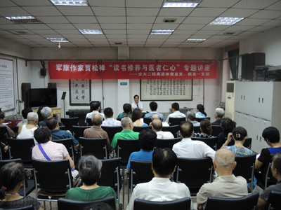 为了深入持续开展改进机关作风和强化廉政意识,扬医者仁心。7月3日,我院离退休党总支与机关一支部联合举办以廉政为主题的讲座活动,邀请著名军旅作家贾松禅进行“读书修养与医者仁心”专题讲座,受到广大党员干部的好评。离退休党总支书记范亚利主持讲座,70余名党员干部聆听了讲座,反响热烈。