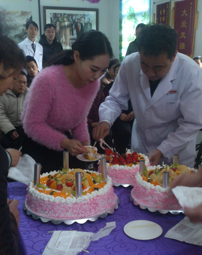 党员们还给老人们带去了蛋糕和面包,在义诊结束之后,支部的全体成员与老年公寓的工作人员和老人们进行了联欢活动,大家一起品尝蛋糕,期间我们支部的许多党员积极帮助那些活动不便老人,带去了爱心,带去了欢乐,此活动受到了老年公寓院方的欢迎和老人们的赞扬。