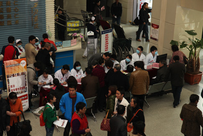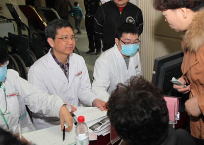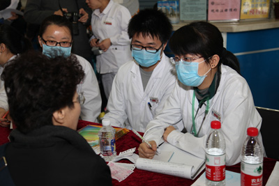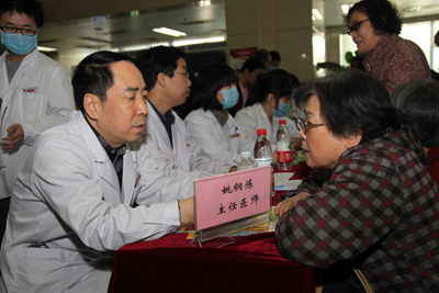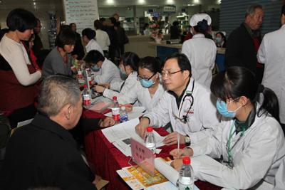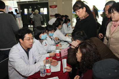 2014年3月13日为第九个世界肾脏日,本次肾脏日的主题是:“防治老年慢性肾病”。为了提高广大患者保护肾脏的意识,我院肾病科在医院门诊大厅一楼举办肾脏日大型义诊活动。此次活动重点是关注慢性肾脏病,关注老年患者,关注人类健康。科室主任桂保松、姚钢炼教授以及马立群、朱丹、葛蘅副教授等15名专家教授和医生护士为来院患者和群众免费诊病、答疑解惑、免费测血压,并发放肾脏病健康手册及防治肾病的相关宣传资料。从早上到中午,前来咨询的患者和群众络绎不绝,有许多有肾病的老患者,更有看到媒体预告和和宣传海报慕名而来的,义诊活动共接待了160多名患者和群众。