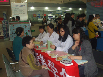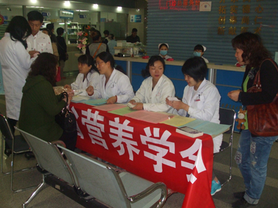3月26日,营养膳食部在医院门诊大厅一楼举办普及营养知识大型义诊活动。重点是普及营养知识、疾病饮食指导、关注人群健康,同时也是院工会工作下移基层的一次活动。科室主任张西玲、工会副主任张海英、营养医师及营养护师宋敏、白安琴、雷枫、李谦等为来医院的患者和群众免费诊疗、答疑解惑,发放营养知识健康指导传单、手册及糖尿病、高血压等疾病饮食指导原则的相关宣传资料。整个上午,前来咨询的患者和群众络绎不绝,义诊活动共接待了一百多名患者和群众,并发放小纪念品限盐勺。