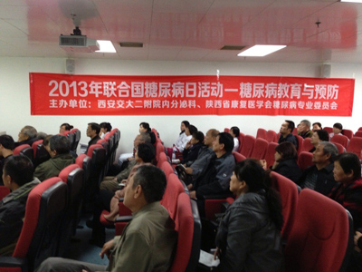 2013年11月14日联合国糖尿病日的主题是“糖尿病教育与预防”,口号是“保护我们的未来”。为了能够让更多糖尿病患者正确认识糖尿病,科学规范地进行治疗和控制,提醒更多社会人群关注糖尿病,我院内分泌科于11月12日下午举办了大型健康教育活动,吸引了院内外患者及家属、其他科室的医务人员近六十人前来参加。