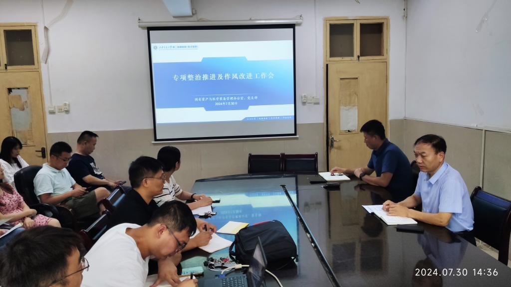 7月30日下午2点30分,医院国有资产与医学装备管理办公室(以下简称国装办)召开科室专项整治推进及作风改进工作会,国装办全体党员和职工30余人参会,会议由国装办主任兼党支部书记叶泽宇主持。