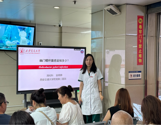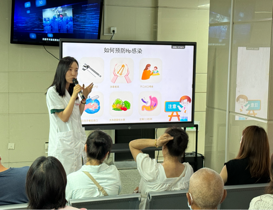 为了普及健康知识,提高患者对幽门螺旋杆菌的认识,2024年7月31日我院门诊部在综合楼三楼E区成功举办了以幽门螺旋杆菌为主题的健康大讲堂,本次讲座是2024年度开展的第十七次门诊健康大讲堂,由消化内科医生全晓静主讲,旨在帮助公众了解幽门螺旋杆菌的病因、预防方法及治疗手段,提升大家的健康意识。
