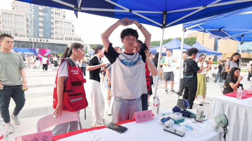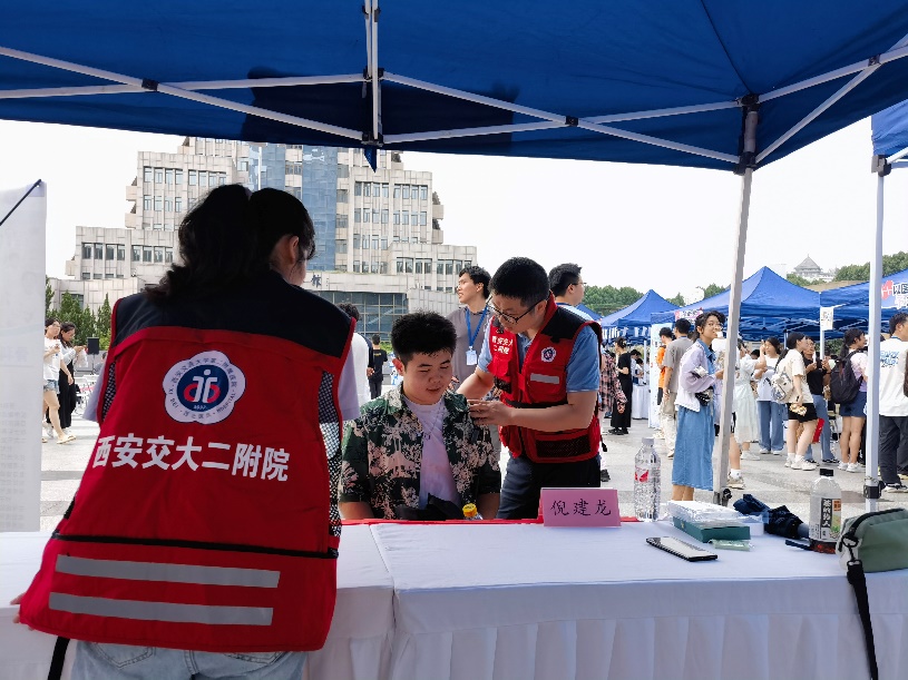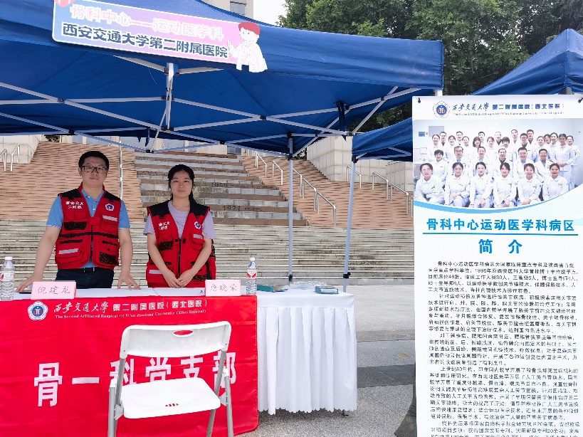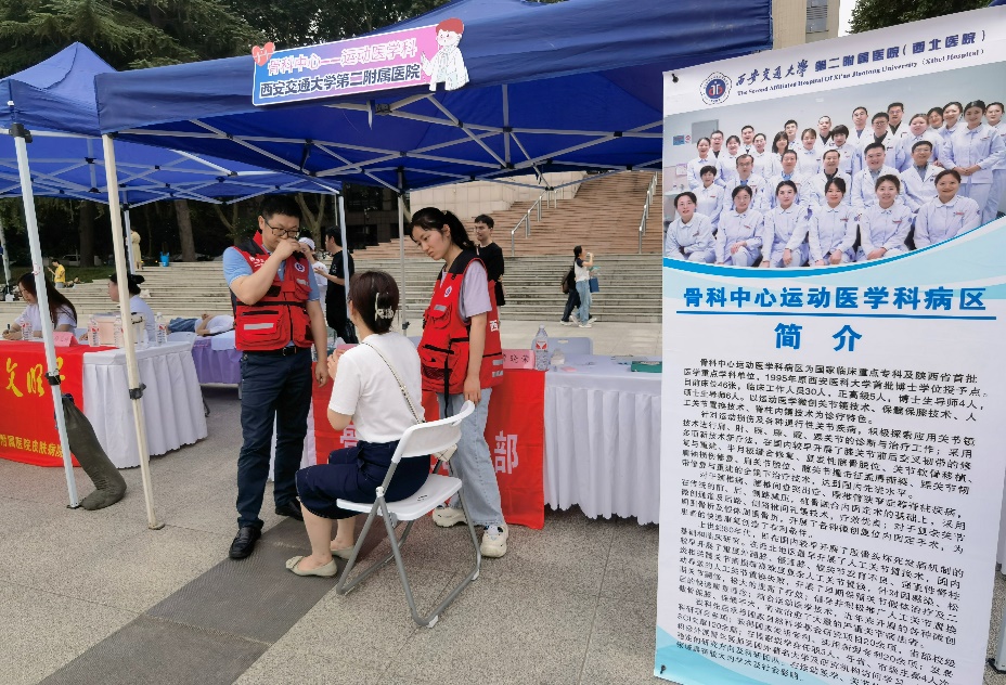 我院骨科中心-运动医学科受邀参加此次盛会,并面向全校师生开展义诊活动,传播健康知识。收到邀请后,全科高度重视。在骨一科党支部书记、运动医学科主任时志斌教授的领导下,由倪建龙副主任医师,詹晓荣护师组成的义诊团队,于7月12日(周五)下午准时抵达活动现场。