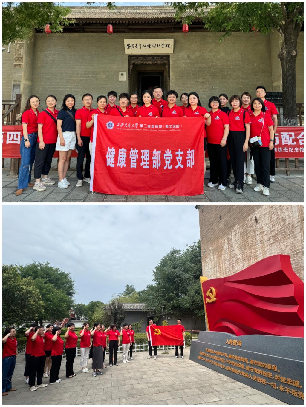 在中国共产党成立103周年之际,弘扬建党精神,汲取奋进力量,深化党员思想教育,2024年6月30日上午,健康管理部党支部全体党员、发展对象、入党申请人及团支部骨干前往泾阳县安吴堡战时青年训练班纪念馆参观学习,开展“赓续红色血脉,挺膺青年担当” 红色教育实践主题党日活动。