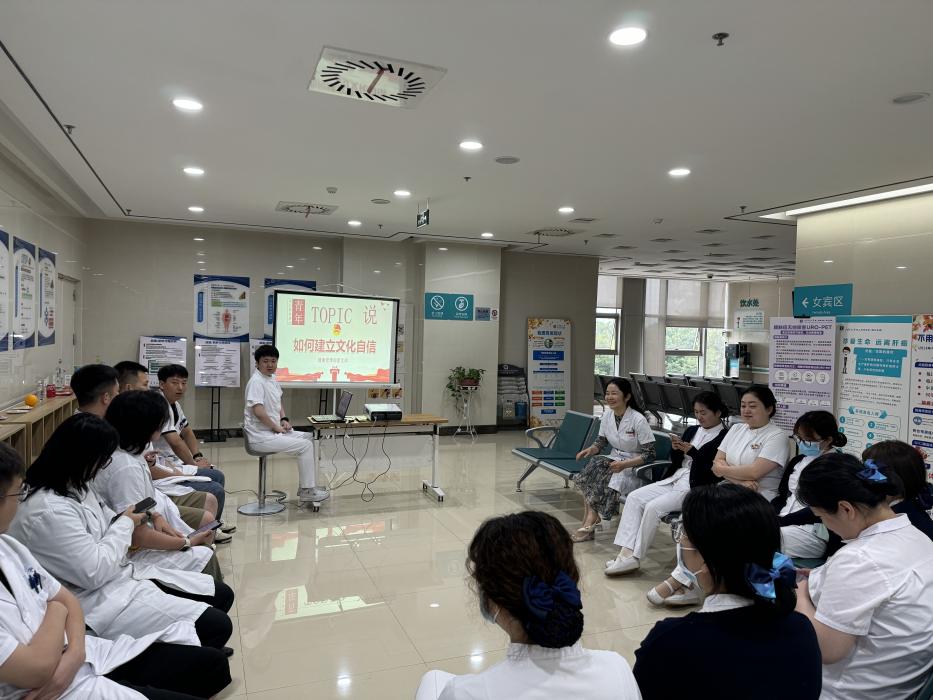 2024年7月3日下午,健康管理部团支部在科室三楼营养宣教区开展了“青年Topic说”系列活动第五期,本期主题为“如何建立文化自信”。活动由团支部书记闫瑾主持,全体团员参加,并邀请王倩主任、党员陈雨以及大明宫管理办团支部书记杨洋参与此次活动。