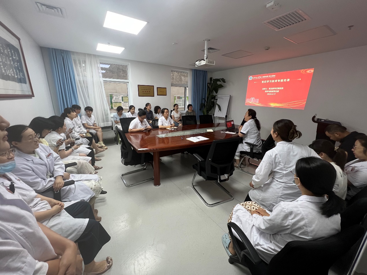 2024年6月24日上午,药学与院感党支部在药学部会议室召开党纪学习专题组织生活会,会议由支部书记席枝侠同志主持。
