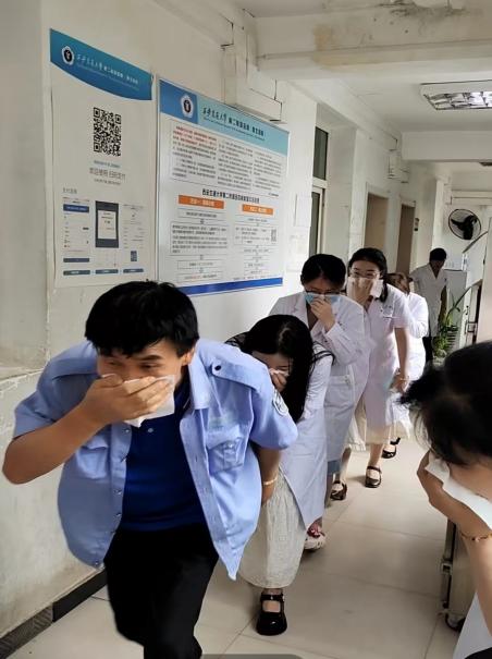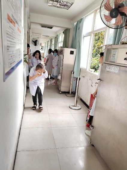 随后,演练正式开始,随着消防警报声的响起,李明副主任立即启动救火应急预案、报警、疏散人员、扑救初期火灾,迅速有序的组织工作人员及患者家属按照预定的疏散路线,有序撤离到安全区域。在疏散过程中,大家保持冷静,互相协助,确保无一人掉队。