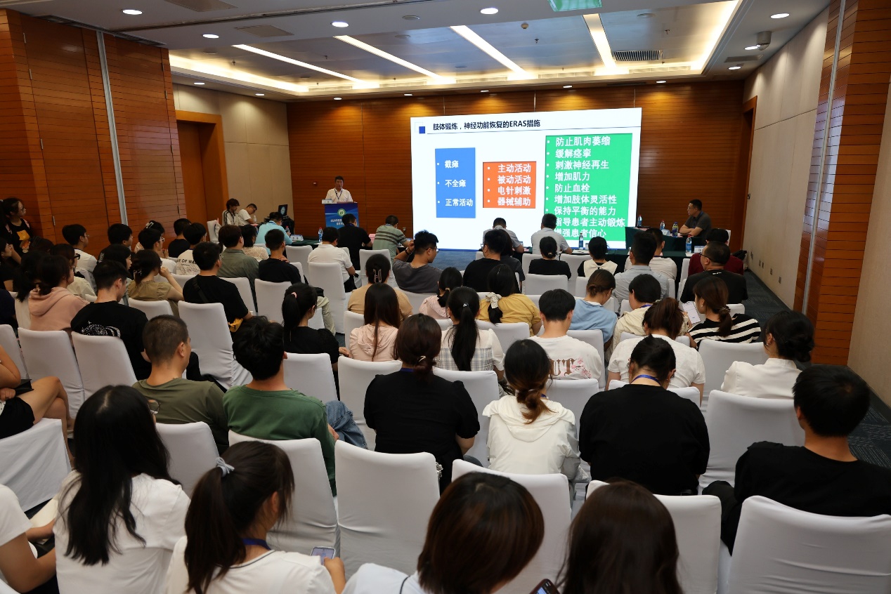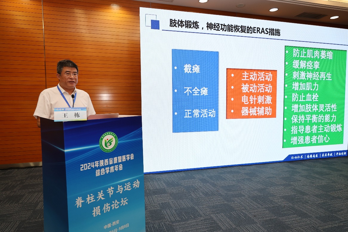 论坛上,作为陕西省康复医学会脊柱脊髓专委会主任委员,王栋主任做了《脊柱术后的早期快速康复》的演讲,他在演讲中指出,在脊柱手术后ERAS的应用尤为关键,通过一系列优化措施,如术前个体化宣教、精准微创的手术方式、超前及多模式镇痛、术后早期康复介入等,可以促进患者快速康复、提高治疗效果、并降低医疗费用和社会家庭负担。