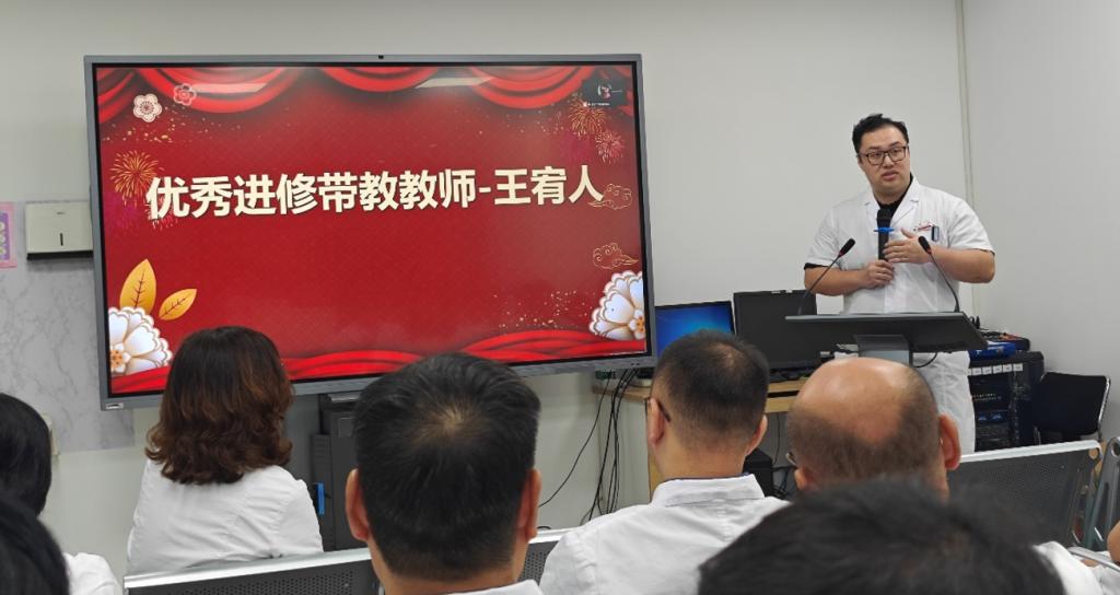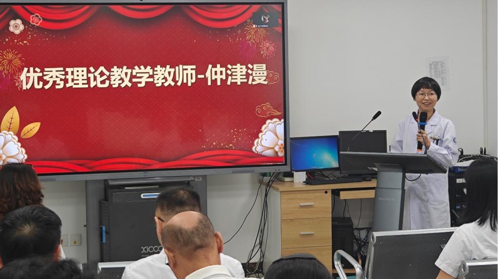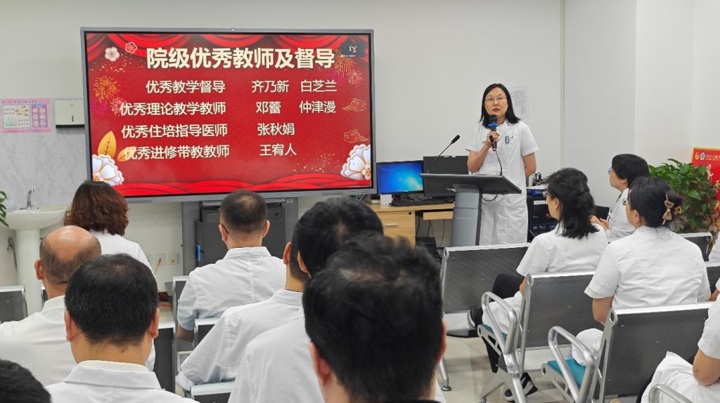 教学主任陈欣老师对获得院级优秀教学督导、理论教学教师、住培指导医师、进修带教以及参与全国高等医学教育临床医学专业课程思政案例库编写的多位教师表达了诚挚的祝贺,并希望中青年教师以它们为榜样,在教育这条道路上持续耕耘。其次,科室对参与教学工作的住培指导教师、教学/住培秘书、教辅、实习带教教师进行了表彰、奖励;随后优秀教师仲津漫和王宥人分享了教学经验及实习进修带教感悟。
