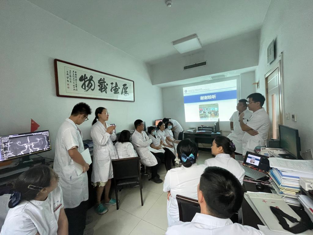 早期康复是指在疾病急性期或早期开始的康复治疗,其目的是为了预防并发症,最大限度地减轻障碍和改善功能,提高患者的日常生活能力。对于老年患者而言,早期规范康复治疗可以极大程度提高功能康复的效果,加速康复进程,减少各类并发症。雷晓辉治疗师长向老师们介绍了各类老年康复治疗方法以及卒中后相关功能障碍的介入手段和标准措施,同时,康复科前移组团队成员结合老年神经科收治患者的类型及特点,就如何准确有效及时地开展康复治疗与医护人员展开深入的交流,为后期学科间更加深入合作,更好的为患者提供康复服务打下了基础。