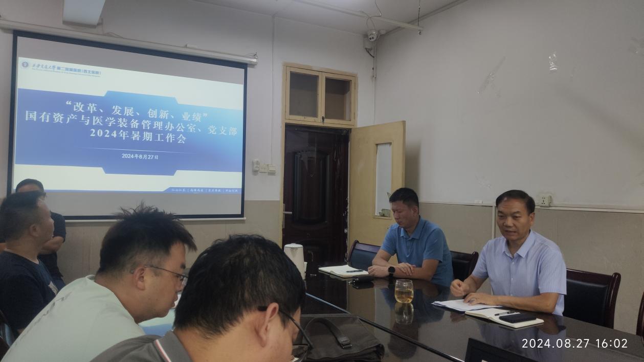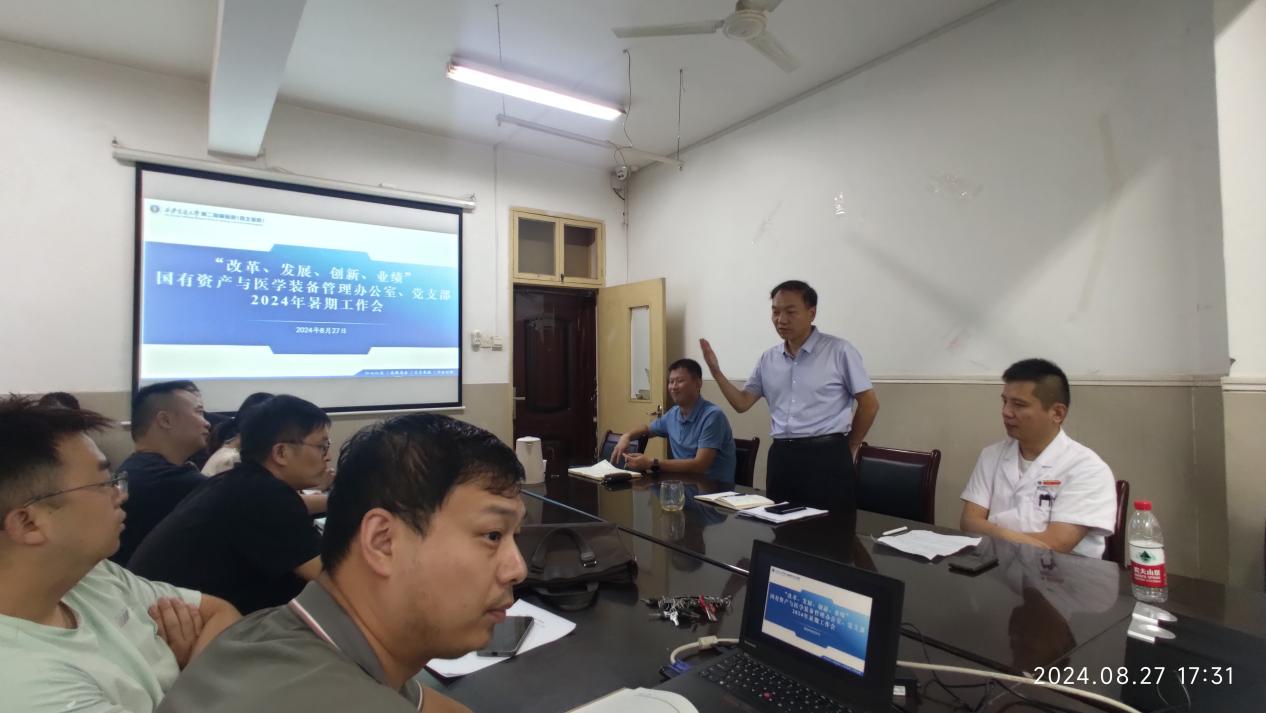 为积极响应院党委号召,贯彻落实党的二十届三中全会精神的重要举措并传达我院暑期工作会议精神,医院国有资产与医学装备管理办公室(以下简称国装办)于2024年8月27日下午3点30分至晚上7点30分,在国装办会议室召开以“改革、发展、创新、业绩”为主题的部门暑期工作会。会议由国装办主任兼党支部书记叶泽宇主持,部门全体党员职工参会。会议将务虚与务实相结合。务虚部分,通过上半年工作小结,围绕“改革、发展、创新、业绩”主题,集思广益,谈目标、谈思路,激活思维;务实部分以“三张清单”压实责任,谋实招、想办法,干出实效。尤其在面对部门工作任务重、压力大、时间紧的情况下,通过会议,进一步明确方向、理清思路,大家团结一致、凝心聚力,共同谋划科室未来发展新篇章。