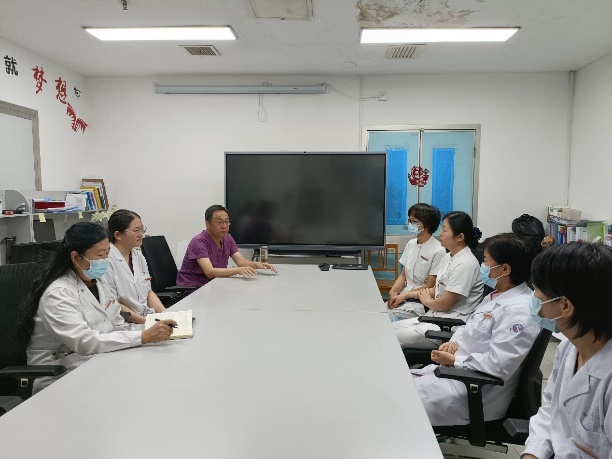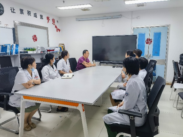 在重症医学科,首先由石晶住院总医师向大家介绍了我院重症医学科的管理理念、发展方向、质量控制、患者管理模式、年青医师培养方式、骨干医师教学安排等。随后王小闯主任医师就神经重症监护病房的定位、建设方向、质量控制与人才培养模式与展淑琴主任、张茹副主任、刘璟洁副主任等进行了深入讨论,并提出了宝贵的建议及具体实施举措。神经内科及重症医学科均表示今后要加强交流和合作,助力学科发展,从而更好地服务患者。