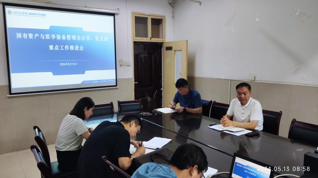 近日,医院国有资产与医学装备管理办公室(以下简称国装办)在国装办二楼会议室召开部门重点工作推进会。国装办党支部委员、各班组长及办公室成员10余人参会,会议由支部书记、科室主任叶泽宇主持。