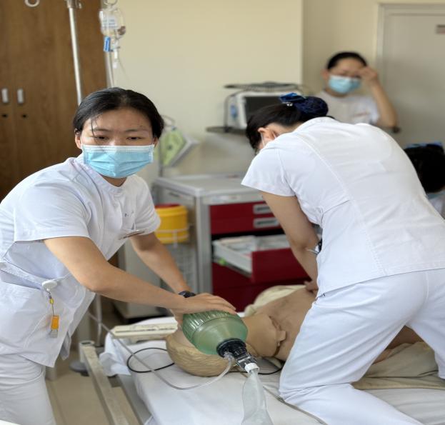 本次演练模拟患者突发心跳骤停,需要紧急抢救的场景。护士在查房过程中接到急救信号后,迅速启动急救应急预案,演练主要包括心肺复苏,建立静脉通路,除颤仪及相关急救药品使用等。