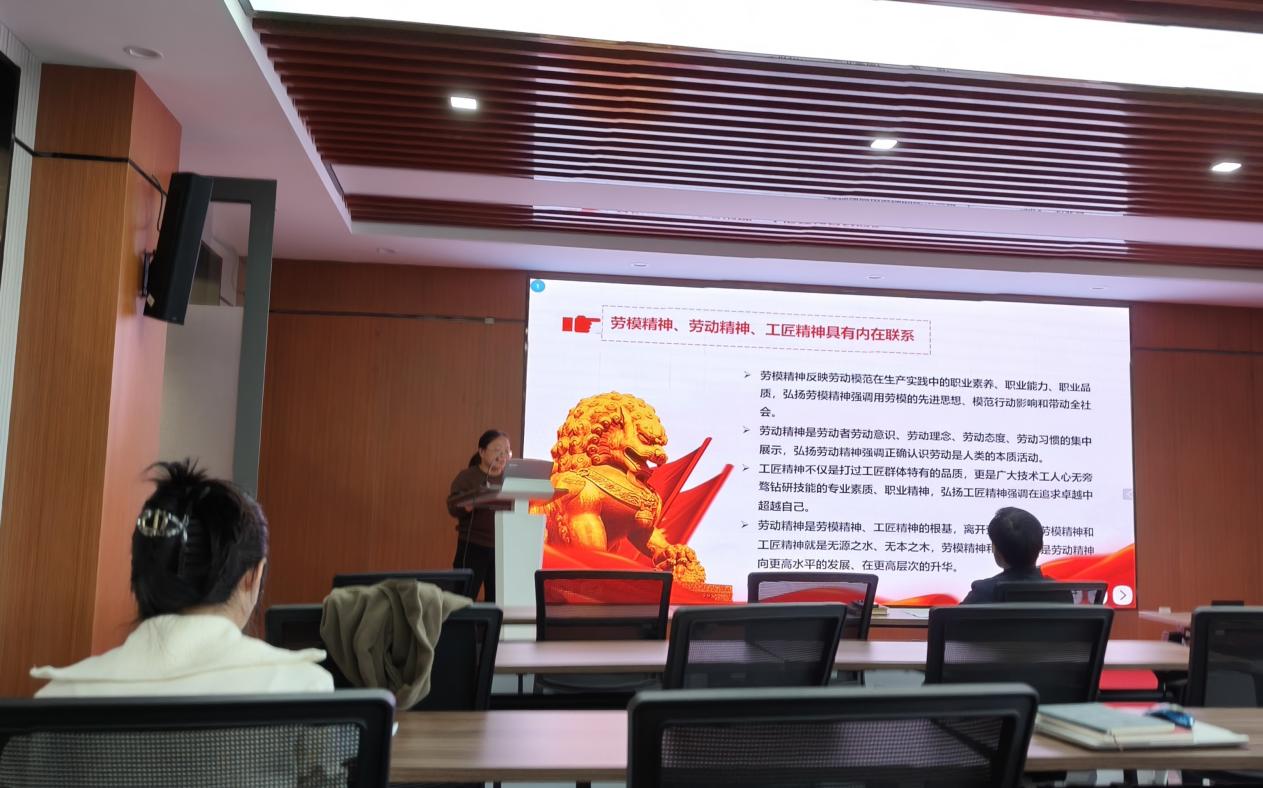 支部教师党员杨祎讲述微党课“大力弘扬劳模精神、劳动精神、工匠精神”,她深入浅出地阐述了这三种精神的内涵和内在联系,鼓励科室人员要将这三种精神融入日常工作和学习中,充分发挥党员的先锋模范作用,为推动高质量发展做出贡献。
