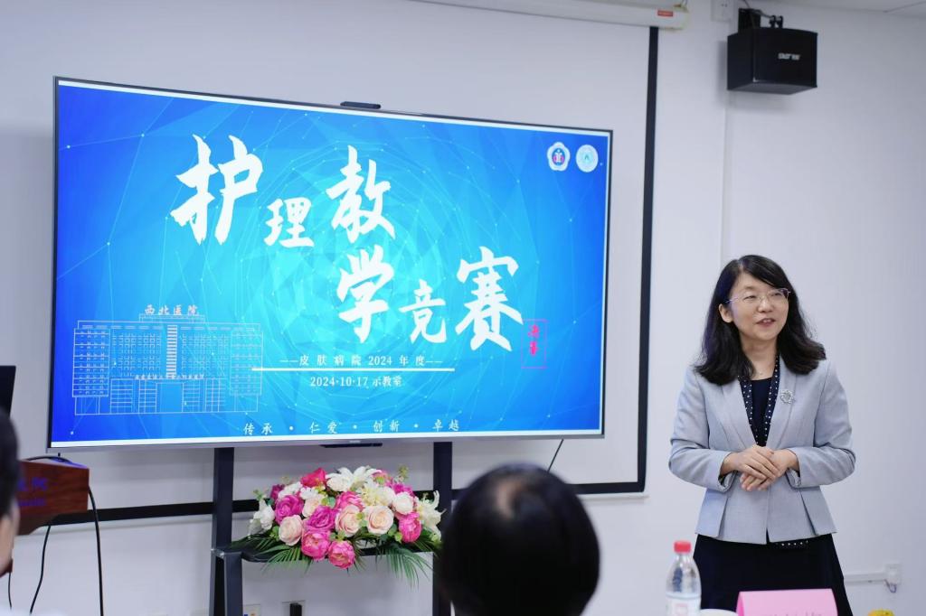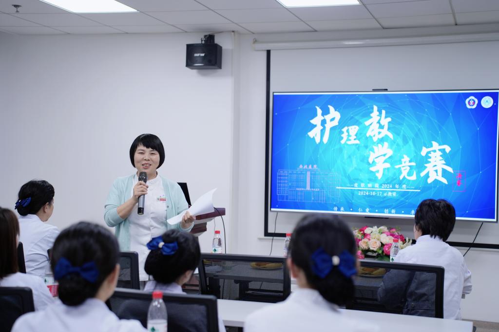 竞赛伊始,耿松梅主任发表了热情洋溢的讲话,对本次教学竞赛的举办表示肯定,并对参赛选手寄予厚望。竞赛由孔淑贞副护士长主持。10位选手以饱满的热情和专业的姿态,依次进行了精彩的教学演讲。授课内容涵盖了皮肤科常见疾病的护理知识、护理操作技巧以及最新疾病指南的解读等。选手们运用案例分析、图片展示、互动提问和模型演示等多样化教学手段,全面而深入地讲解了相关专业知识,展现了他们对比赛的热情和对专业知识的精湛掌握,为在场观众带来了一场印象深刻的教学盛宴。