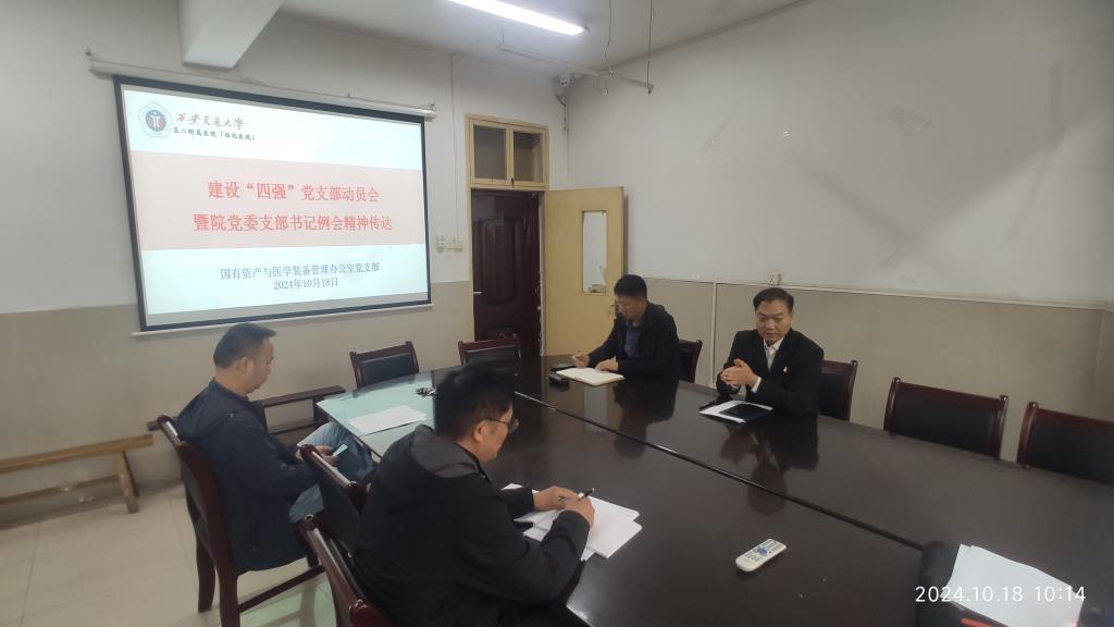 10月18日上午10点,医院国有资产与医学装备管理办公室(以下简称国装办)在国装办二楼会议室,召开“四强”党支部建设动员大会,并进行了“三湾改编”党课学习,进一步加强了党支部建设,提升了组织活力。国装办党支部全体党员及入党积极分子20余人参会,本次会议由国装办主任、支部书记叶泽宇主持。