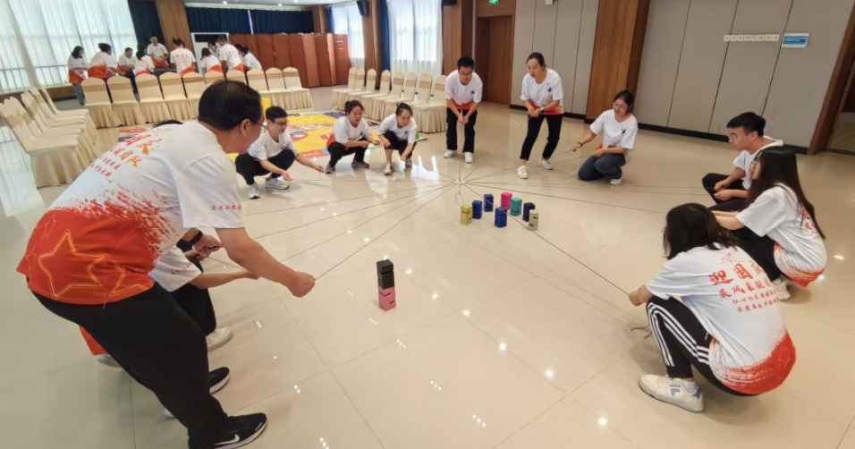 红色教育最后环节,大家移步户外继进行实践拓展,旨在提高团队协作能力和信任感。裴书记亲自上阵,指导大家进行蒙眼回声挑战、高塔合力战等游戏。汗水、口号、笑声、掌声交织在一起,汇织出团结、协作、鼓励、共进的美好场景,刻画出这个秋天里最温暖的画面。