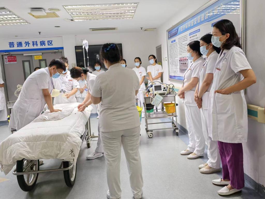 为进一步提升医护人员的应急能力,力保患者住院安全,营造良好稳定的医疗环境,普通外科继中秋假期前组织全科急救演练培训之后,于2024年9月25日国庆假期到来前再次组织全体医护人员开展急危重症患者的急救演练工作,此次演练特邀患者安全专项行动负责人、重症医学科护士长王利主任护师及医务部朱丽光老师莅临现场予以点评和指导。