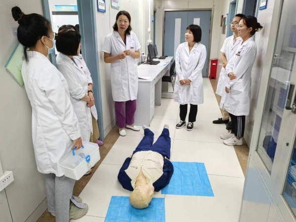 在急危重患者抢救演练中,模拟了一名患者在输血窗口晕倒的情景。按照既定应急预案,输血科团队迅速反应,分工协作,完成了患者状态评估、胸外按压等抢救操作。患者安全专项行动负责人、重症医学科王利护士长进行了现场观摩并给予了专业严谨的培训。王护士长详细讲解了心肺复苏的“黄金五分钟”、团队配合抢救站位、抢救流程及全院除颤仪分布及紧急调配安排。在王护士长耐心的指导下,科室其他成员积极参与,认真演练,提升了对心肺复苏时间要求的意识和操作规范性。