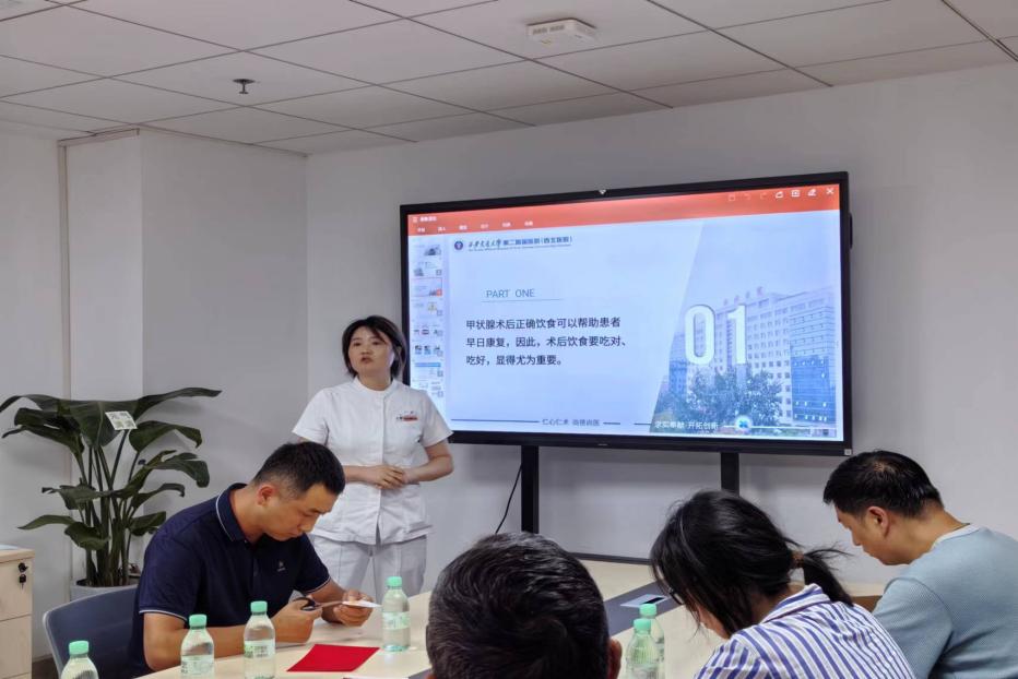 随后,护士长冉小丽以其专业的护理知识和丰富的临床经验,为大家带来了一场关于甲状腺术后健康饮食的精彩讲座。她细致入微地讲解了术后饮食的注意事项、营养搭配以及如何通过合理饮食促进身体康复。在她的引导下,患者们不仅学会了如何科学饮食,更感受到了医护人员的关爱与温暖。这一刻,健康饮食不再仅仅是冷冰冰的医嘱,而是成为了连接医患之间情感的桥梁。