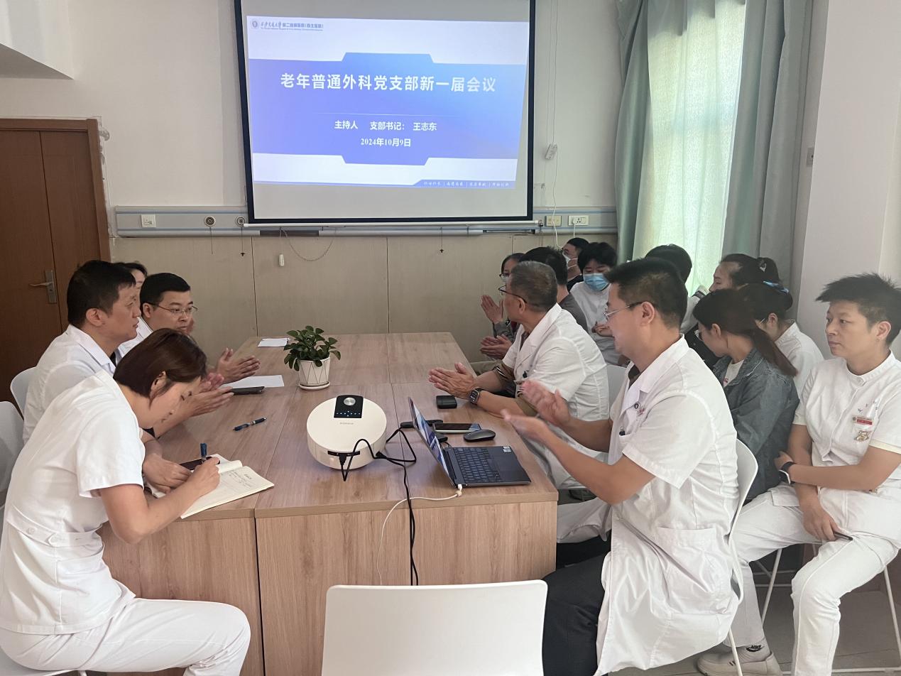 10月9日下午,老年普通外科党支部在西三楼四楼会议室召开了新一届党支部会议,并以“新时代奋斗观”为主题,开展了党日活动。此次会议旨在庆祝新中国成立75周年及医院迁陕建院87周年,进一步激发全体党员在新时代背景下坚定理想信念,树立责任意识,以实际行动推动科室建设和医院高质量发展。