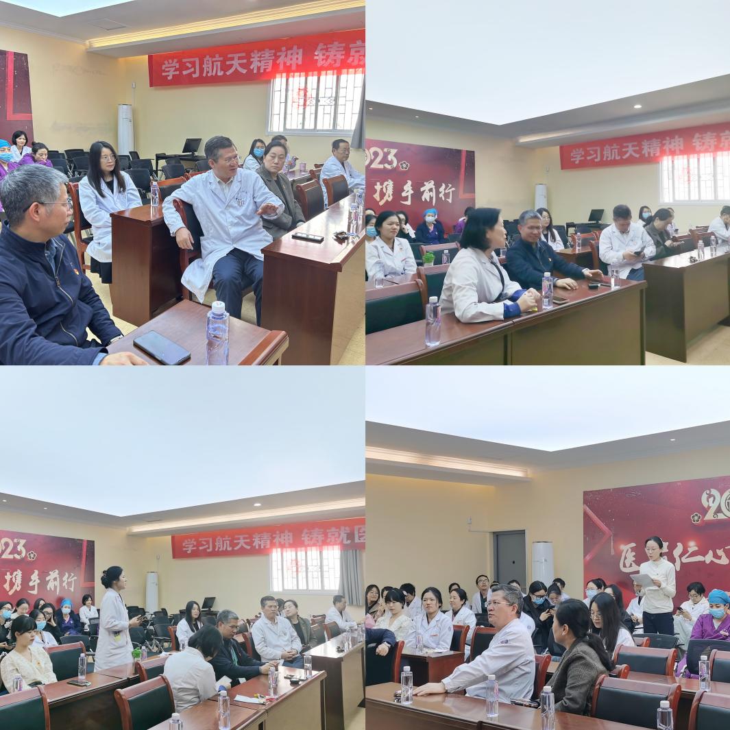 演讲结束,与会党员爆发热烈掌声,纷纷献上对航天人的由衷敬佩与感慨。呼吸与危重症医学科主任杨拴盈教授强调魏世隆研究员的讲述带领我们走近中国航天事业,了解中国航天发展历程,感悟航天系列精神,这些是一代又一代人拼搏奋斗的成就,而成就背后值得每个人学习的是航天人的精神。呼吸与危重症医学科张洁教授也表示学习中国航天事业发展历程,了解航天工程技术之复杂,航天强国的伟大成就,离不开航天系列精神,离不开深沉而伟大的家国情怀。学生党总支部书记吕晔老师首先特别感谢呼吸与危重症医学科党支部邀请学生党支部组织此次联学共建活动,听了魏老师讲座受益匪浅。“特别能吃苦、特别能战斗、特别能攻关、特别能奉献”的载人航天精神,同样也特别适用于大家所从事的医学事业,两支部联学共建将党员学习和医学生思政教育紧密融合,加强了多学科的交流与合作,希望今后多举办此类活动。