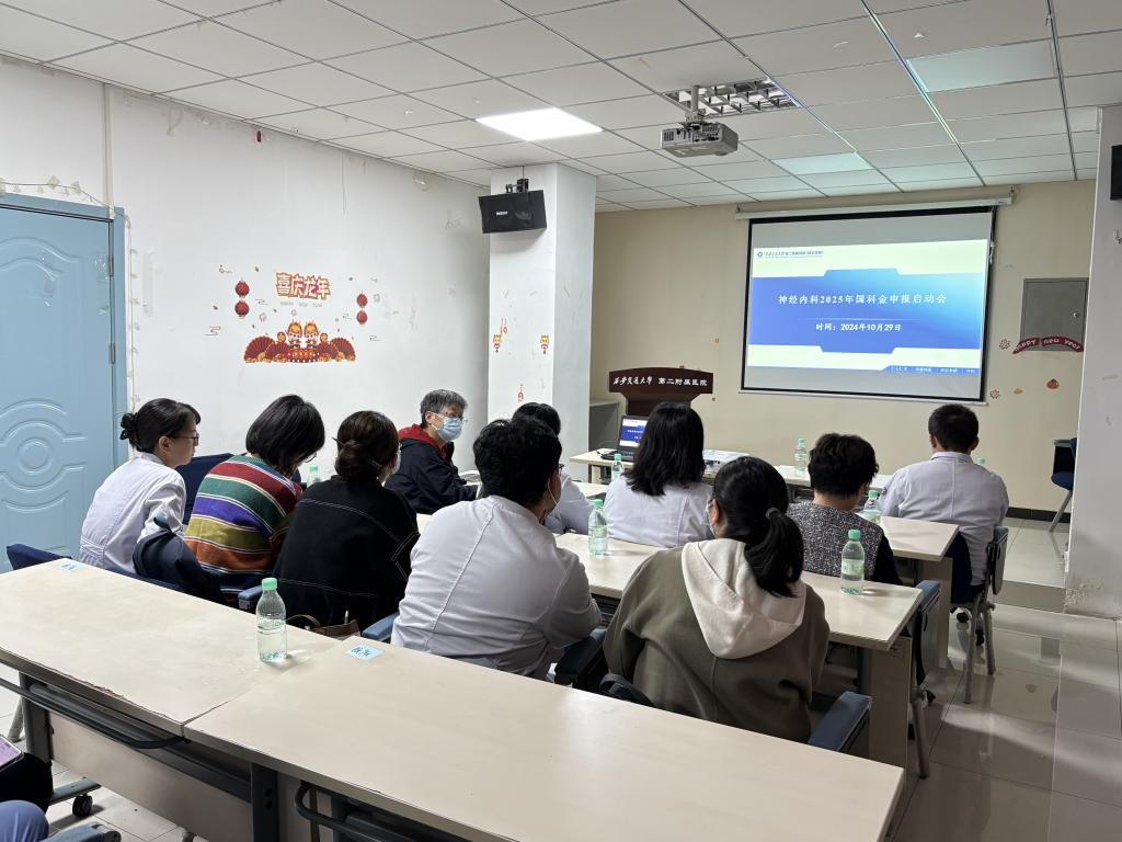 2024年10月29日,神经内科召开2025年国家自然科学基金申报启动会。会议由神经内科副主任樊洪主持,神经内科主任展淑琴教授、副主任卜宁教授、刘璟洁教授及科研骨干参加会议,科研部李华老师出席会议。