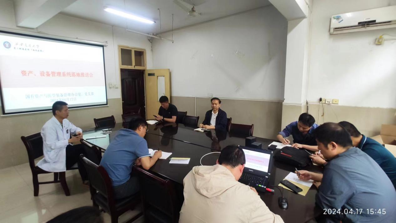 4月17日下午3点30分,医院国有资产与医学装备管理办公室(以下简称国装办)在国装办二楼会议室召开了资产、设备管理系统落地推进会。会议旨在加快医院资产及设备管理系统的实施进度,确保其顺利落地运行。会议由国装办主任、支部书记叶泽宇主持,科室相关工作人员十余人参会。