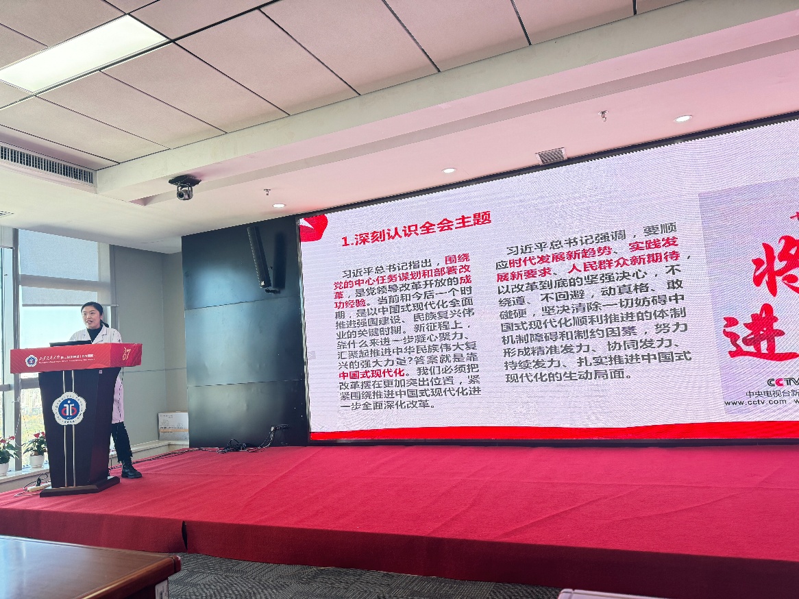 最后,邓捷书记强调,要把学习好、宣传好、贯彻好党的二十届三中全会精神作为当前和今后一个时期的一项重大政治任务,切实把思想和行动统一到全会精神上来,坚决贯彻落实党中央决策部署,结合工作实际,以“闯”的精神、“创”的劲头、“干”的作风奋进新征程,为推进学科和医院高质量发展努力奋斗。