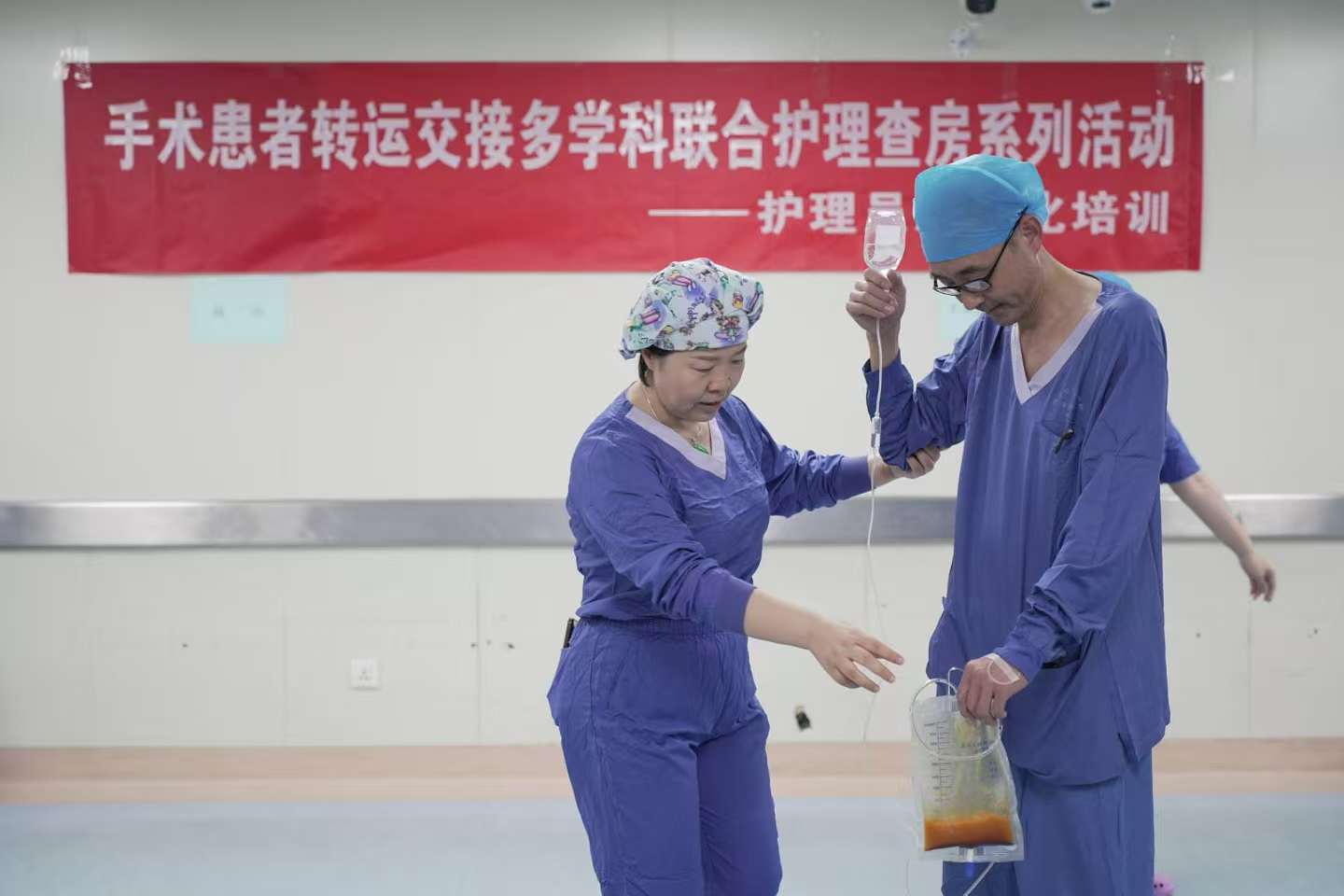 手术室积极响应我院“医疗质量安全月”活动的号召,秉持着全方位保障手术患者转运交接的安全、提高手术周转速度、提升医疗护理质量、促进医患关系和谐为目标的理念,11月30日利用周末时间在手术室五楼护士站组织“手术患者转运交接多学科联合护理查房系列活动—护理员规范化培训”专题培训活动,对手术室现有15名护理员进行了专业性的培训、情景模拟竞赛及患者角色共情体验。