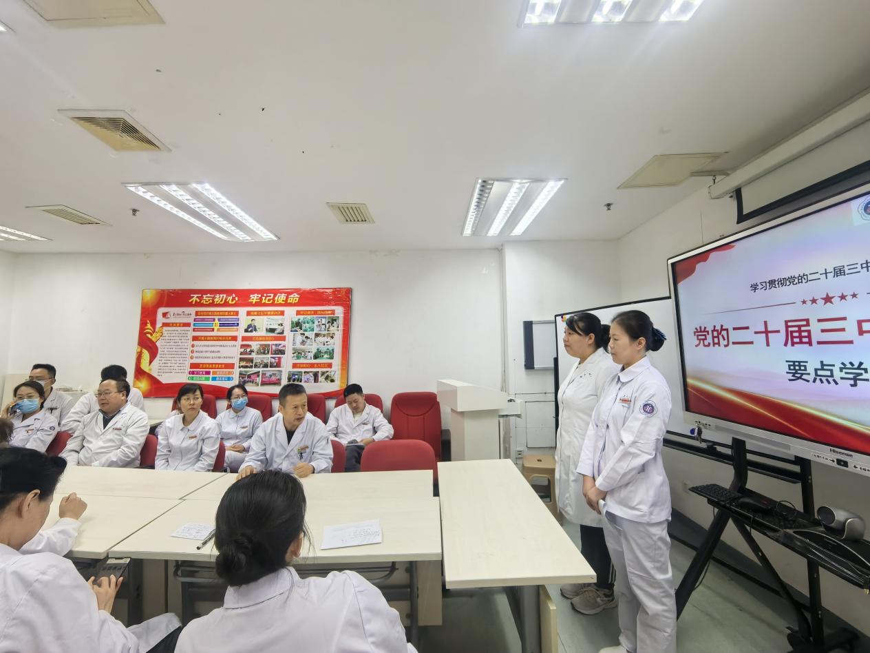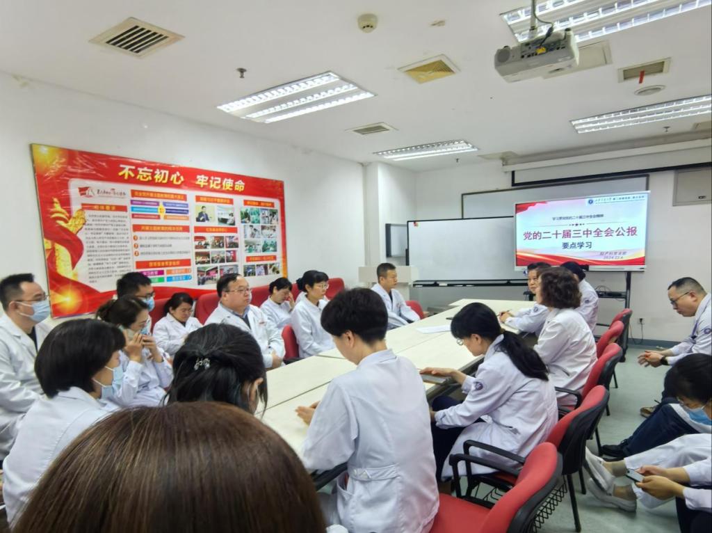 2024年12月4日上午,妇产科党支部在段钊支部书记的主持下,在妇产科示教室学习了党的二十届三中全会精神。活动由段钊书记主持,宣传委员张晨扬PPT展示,全科共同深入贯彻学习了全会的主题、内容和精神实质。学习后,大家纷纷表示,要以此为契机,将全会精神与实际工作相结合不断提高自身业务水平,为患者提供更优质的医疗服务。