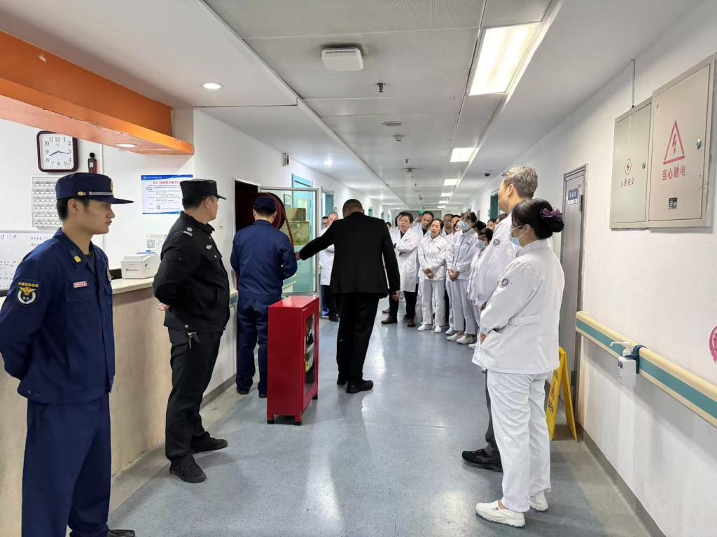 在科室晨交班后姜建涛主任领导全科医护人员参加了消防培训,首先崔耀队长对科室的每一个角落进行了细致的安全检查。从疏散通道的畅通,到消防设施的完备,再到职工日常用电习惯的规范。确保不遗漏每一处消防隐患。然后崔耀队长详细讲解了科室灭火器的适用范围、使用方法以及注意事项,并现场演示了如何正确使用灭火器扑灭初期火灾。同时,崔耀队长还介绍了消火栓的构造、使用方法和维护保养要求,让职工们对消防设施有了更深入的了解,确保在紧急情况下能够迅速有效地应对火灾。崔耀队长讲解后邀请全科医护人员切身体验消防器械的使用及维护,对于有疑问的地方进行了详细的解读及再示范。最后由姜建涛主任对此次消防培训进行了总结,消防安全大于天,要求科室人员在日常工作生活中加强消防安全意识,防微杜渐,责任到人,共同为科室筑起安全消防防线。