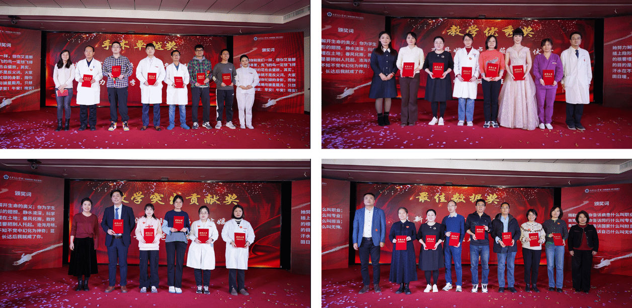 晚会从“时光”、“炽阳”、“星光”三个层面,回顾了心内科的“昨天”、“今天”和“明天”,展现了心内科人的团结与拼搏。此外,晚会还设置了年度荣誉表彰环节,对2024年度在医疗救治、科研创新、教学育人等方面作出杰出贡献的老师们给予了高度赞扬与表彰。