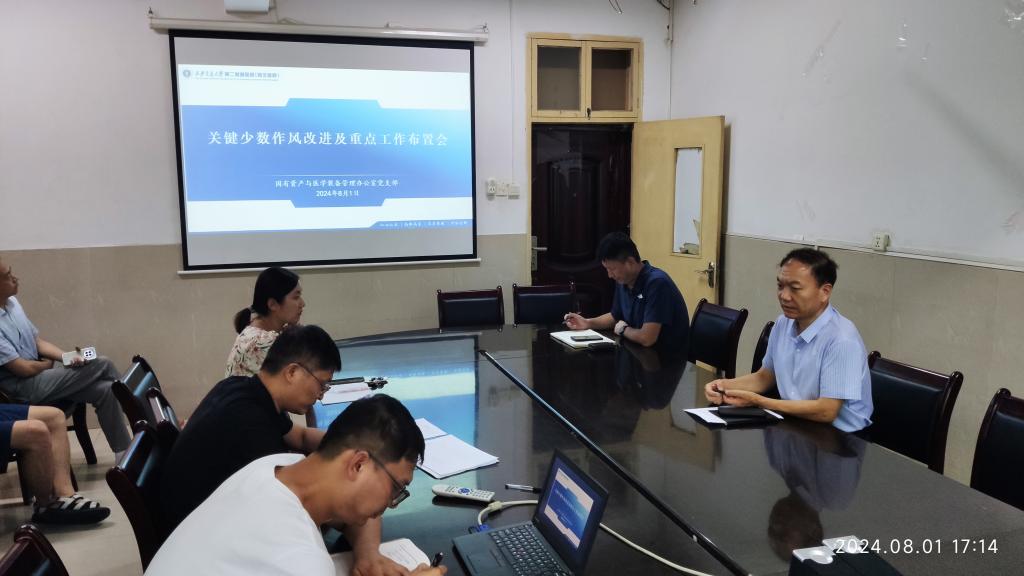 8月1日下午5点10分,医院国有资产与医学装备管理办公室(以下简称国装办)党支部组织召开党员及关键少数作风改进及重点工作布置会。会议由国装办主任兼支部书记叶泽宇主持,科室全体党员、入党积极分子及关键岗位10余人参会。