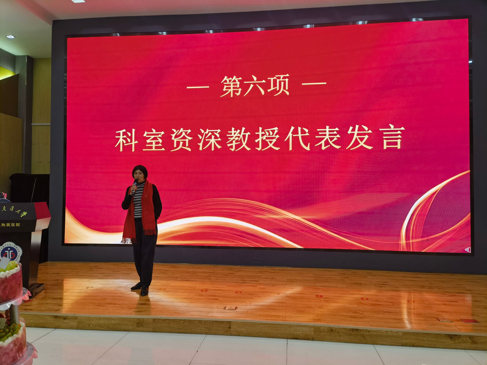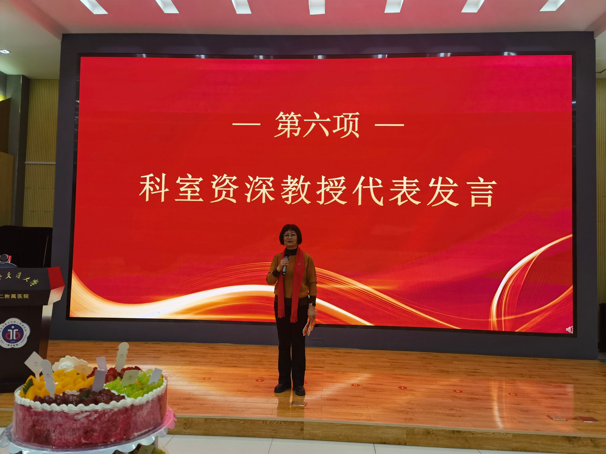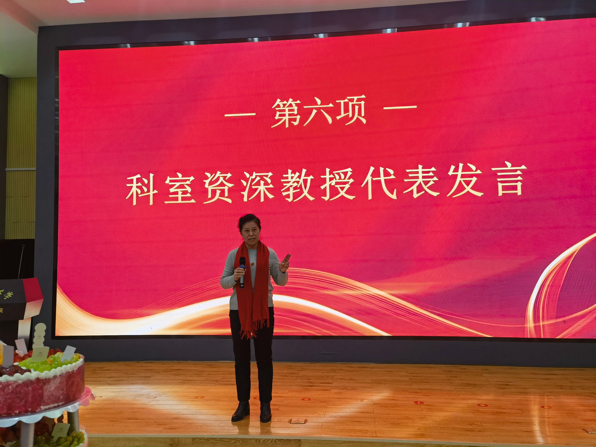 接着,科室老主任薛翔教授也发表了热情洋溢、情真意切的讲话。段钊书记、尉春艳副主任以及科室资深教授邬晋芳、高艳娥、彭慧霞老师也都纷纷上台,她们分别从科室的发展、取得的成绩、未来的方向以及新年的祝福,多方面给大家进行了深切真诚的讲话,使大家在感受到浓浓暖意的同时,也充分感受到科室强劲的凝聚力。