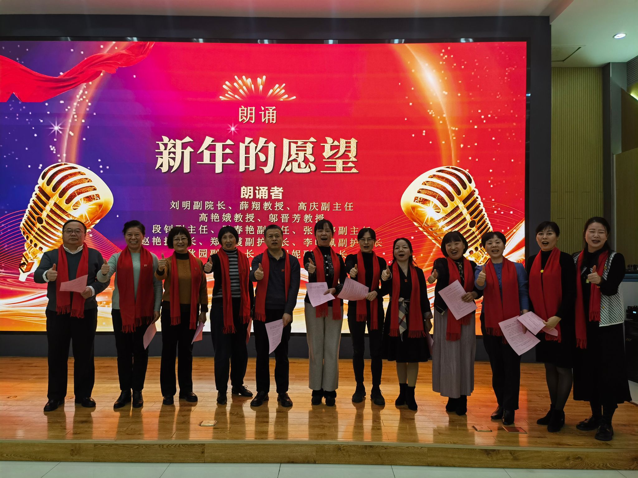 总结会后,在梁诚、张晨扬两位青年才俊的主持下,迎新启航的文艺盛宴拉开了序幕。科室的主任、护士长和资深教授们首先为大家送上一首《新年的愿望》,饱含深情的朗诵,宛如一阵春风吹进了大家的心田,让大家对即将到来的新年充满了期待。