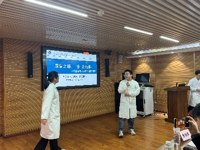 第一支队伍以《康复之路,“步”出所料》为主题,精彩的演绎让人眼前一亮。第二支队伍的《战基底出血破髋炎困境》以流利且严谨的演讲赢得了在场观众的专注。第三支队伍带来了《“折翼天使”遇上“颅内风云”》,通过角色扮演与现场讲解传递了深刻的康复理念。第四支队伍的《双管齐下,“迈”向新征程》,用深入浅出的讲解和坚定的信念打动了全场,掌声雷动。